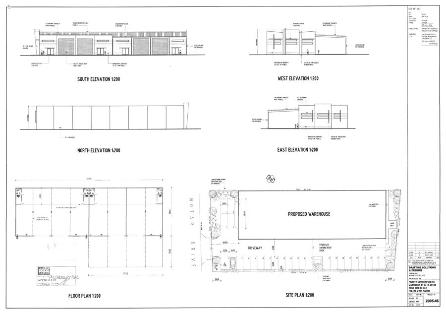 - Total building area is 1,327m2 (approx) plus 319m2 approved awning with roller door