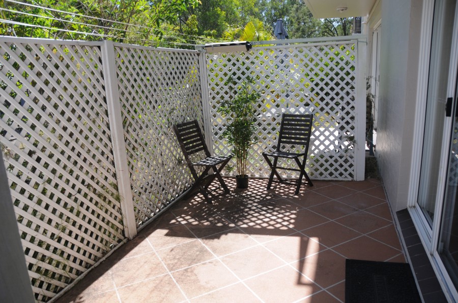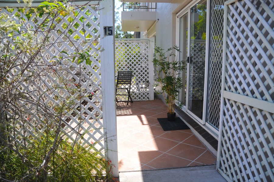 The private enclosed sunny patio is easily accessed from the handy under cover car space.