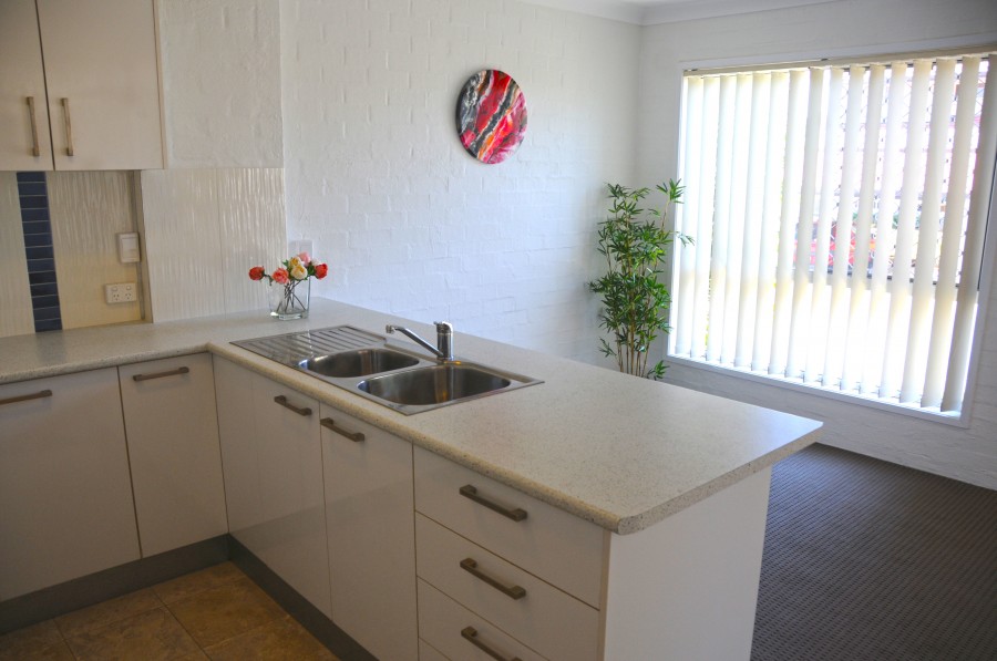 Entertaining is a pleasure in this modern updated kitchen with ample storage and breakfast counter, as it forms part of the air conditioned open plan carpeted living area.