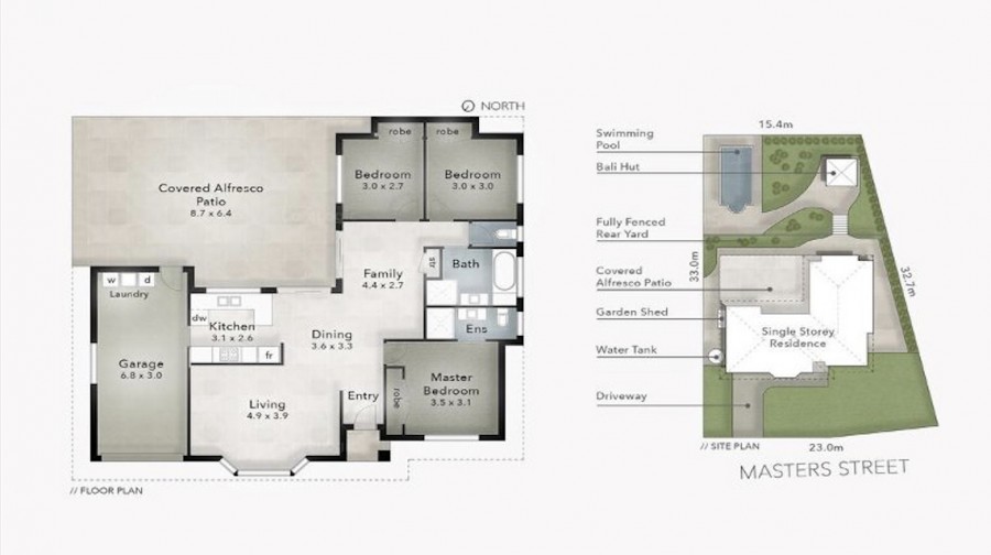 - Massive under cover rear entertaining area with pool, Bali hut and low maintenance gardens